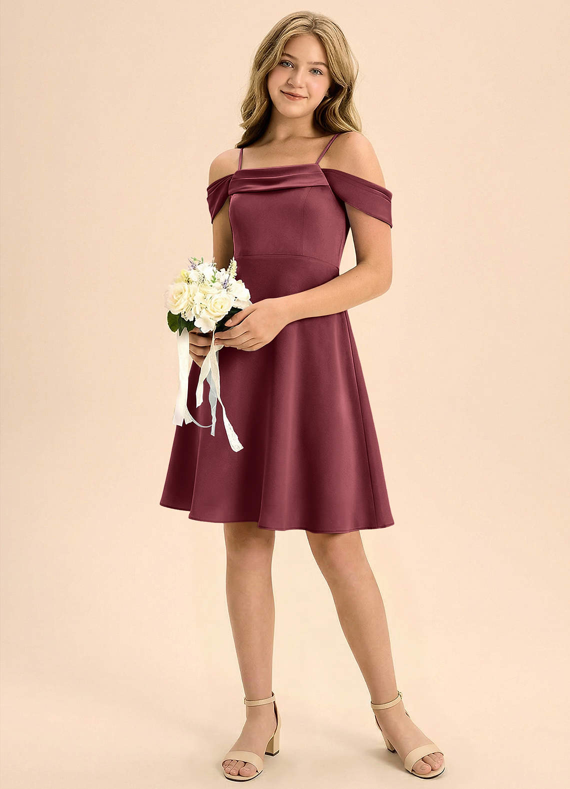 Linia A Pofałdowany Satyna elastyczna Mini Młodsza druhna Sukienka
