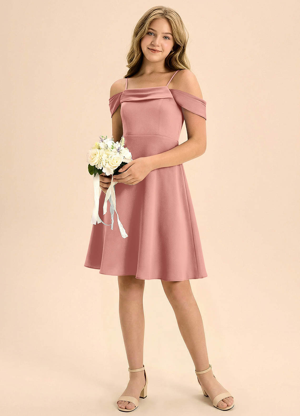 Linia A Pofałdowany Satyna elastyczna Mini Młodsza druhna Sukienka