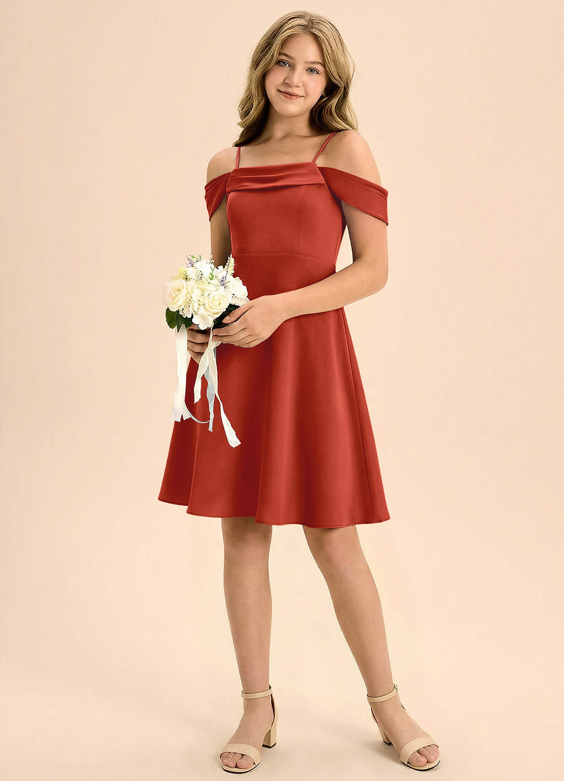 Linia A Pofałdowany Satyna elastyczna Mini Młodsza druhna Sukienka