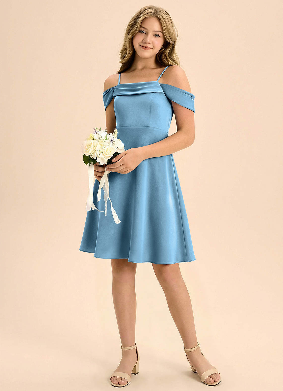 Linia A Pofałdowany Satyna elastyczna Mini Młodsza druhna Sukienka
