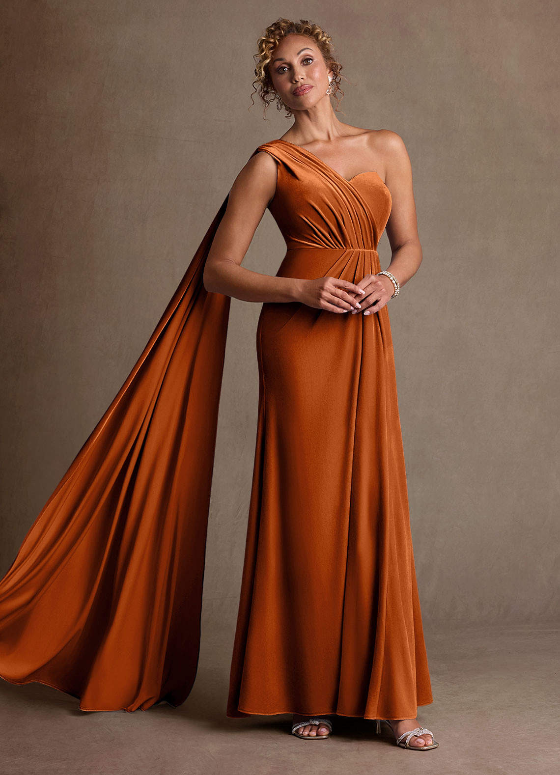 Osłona Jedno ramię Aksamit Długość podłogi Sukienka