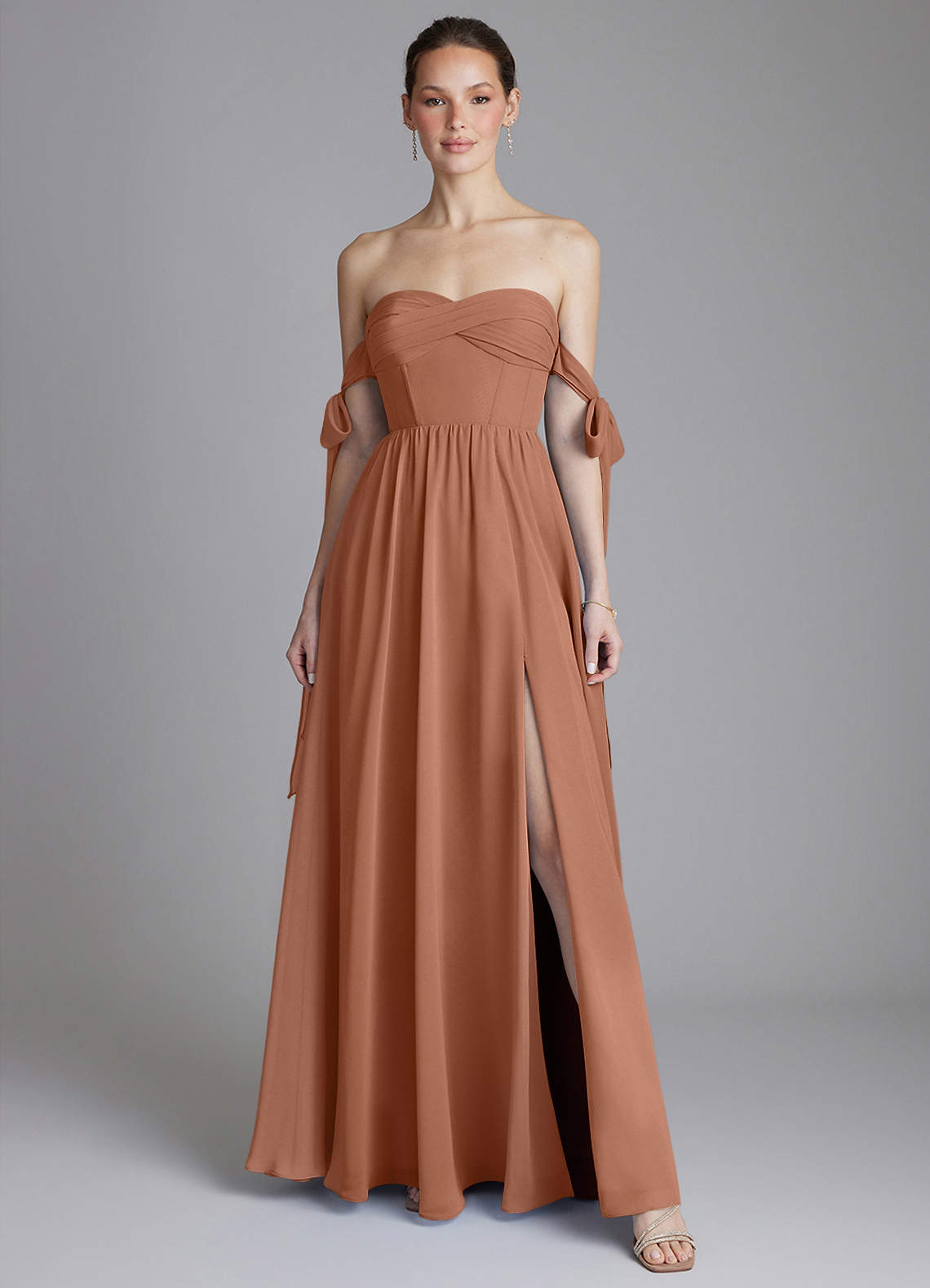 Linia A Zza ramienia Szyfon Do ziemi Sukienka