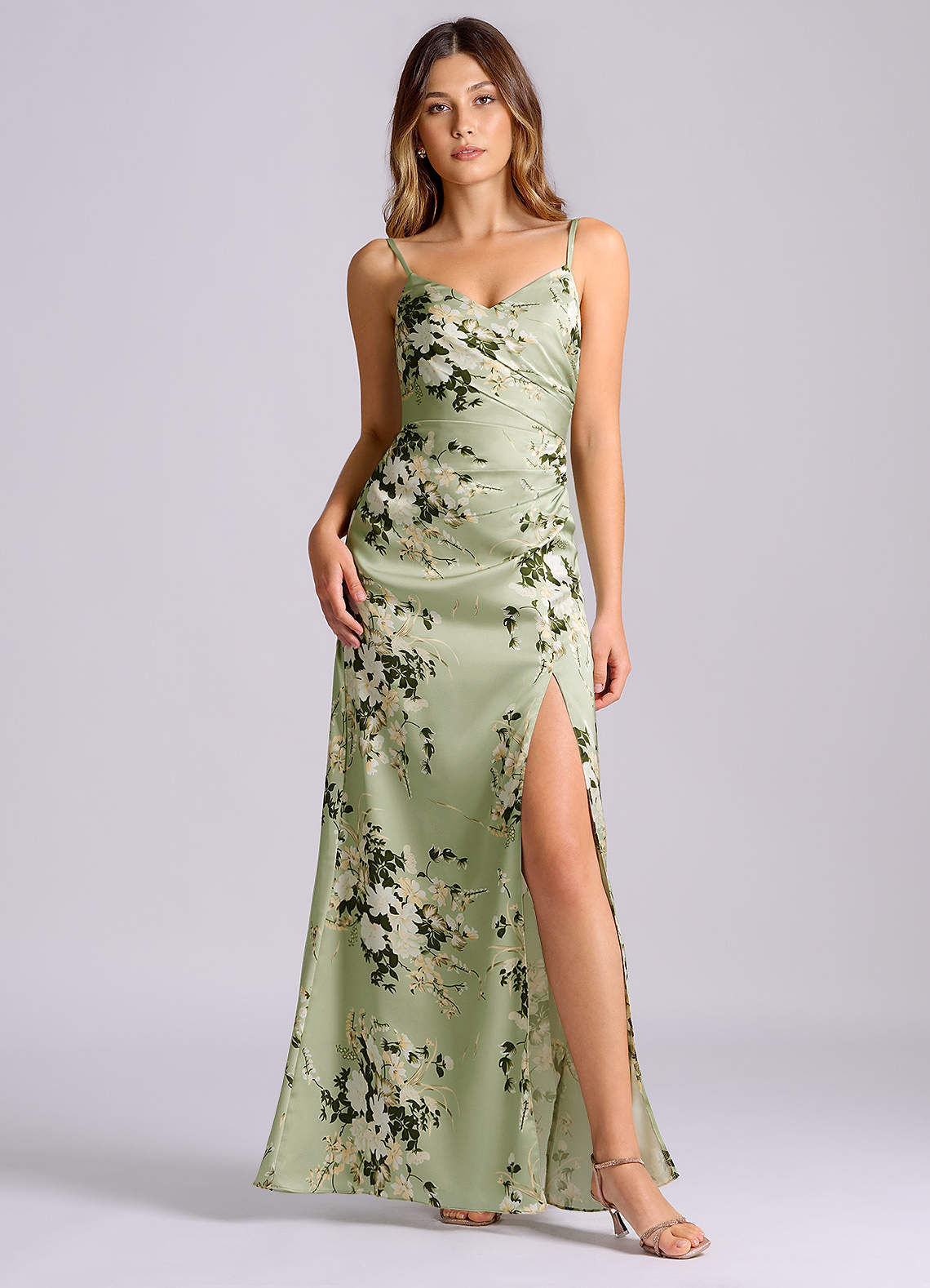 Linia A Pofałdowany Satyna elastyczna Do ziemi Sukienka