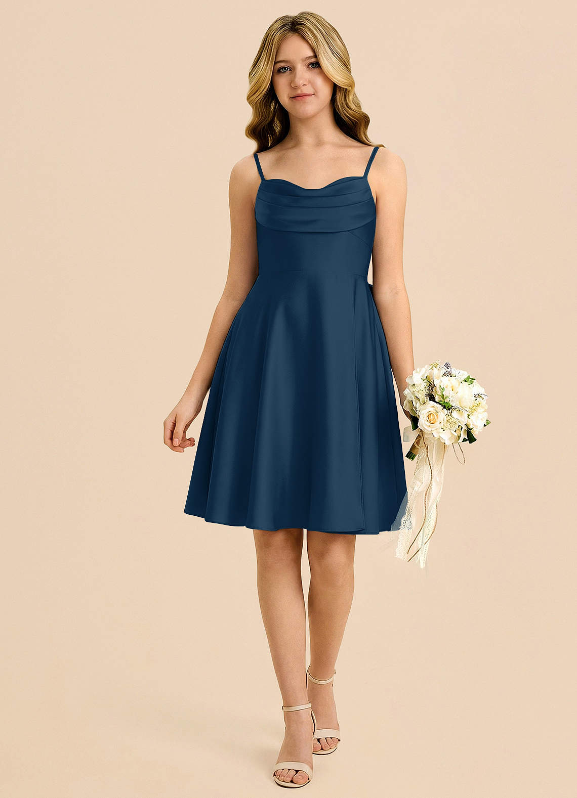 Linia A Dekolt w kształcie serca Satyna elastyczna Mini Młodsza druhna Sukienka