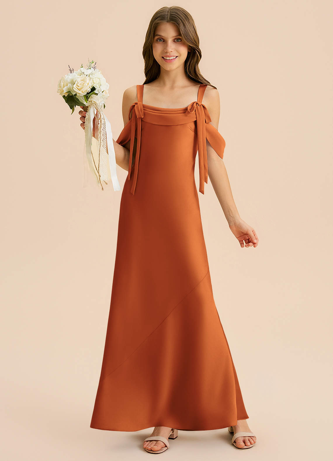 Syrena Pofałdowany Satyna elastyczna Długość podłogi Młodsza druhna Sukienka