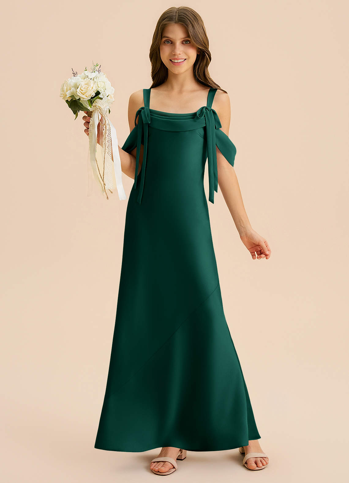 Syrena Pofałdowany Satyna elastyczna Długość podłogi Młodsza druhna Sukienka