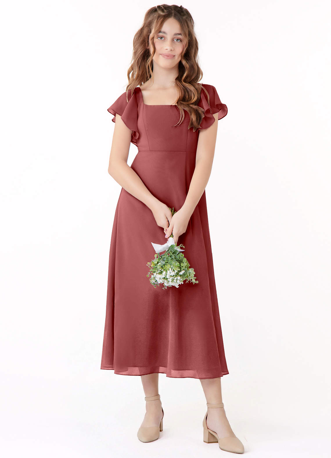 Linia A Marszczony Szyfon Długość herbaty Młodsza druhna Sukienka