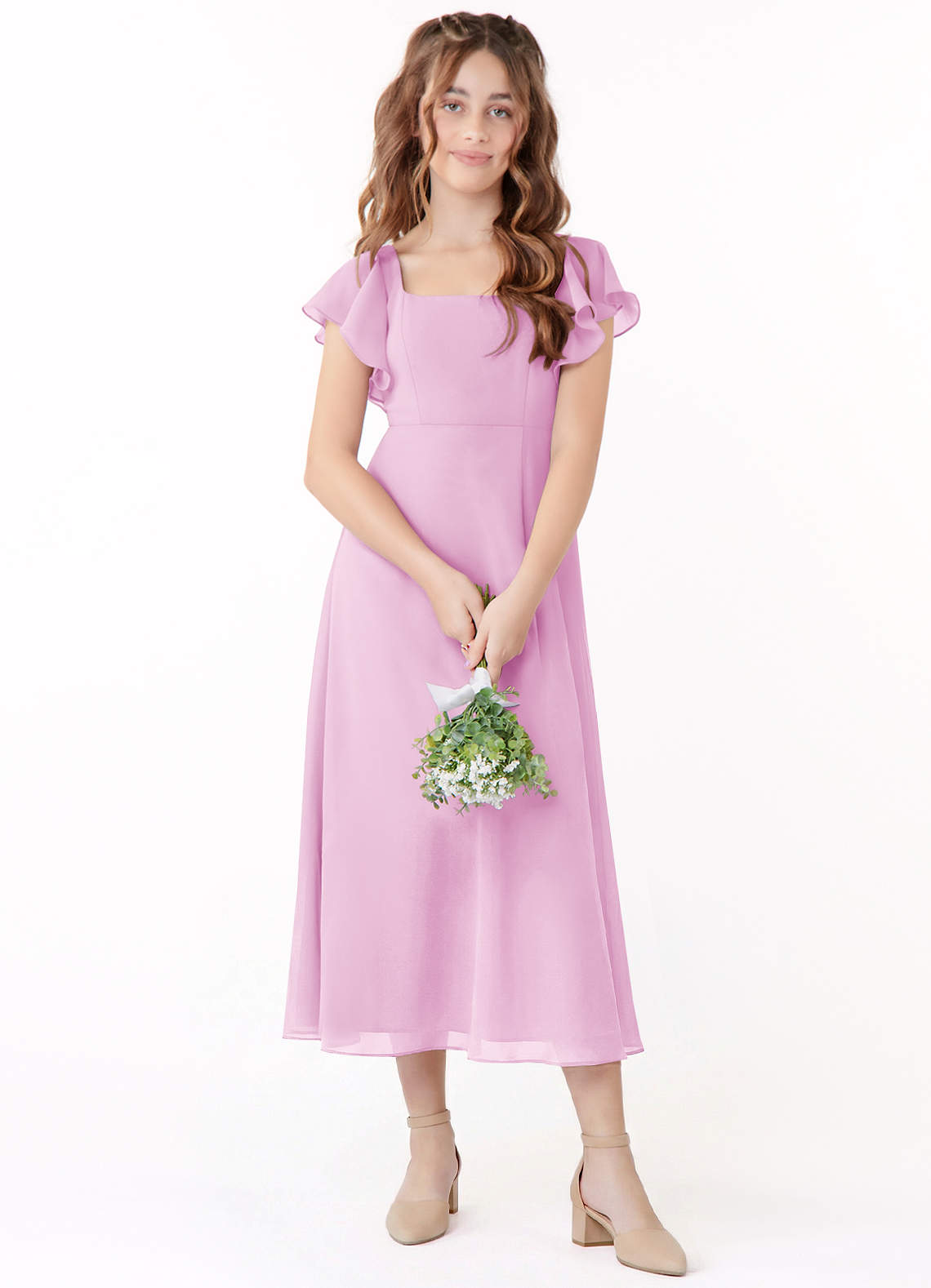 Linia A Marszczony Szyfon Długość herbaty Młodsza druhna Sukienka