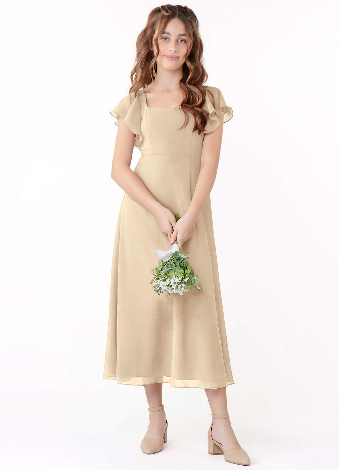 Linia A Marszczony Szyfon Długość herbaty Młodsza druhna Sukienka