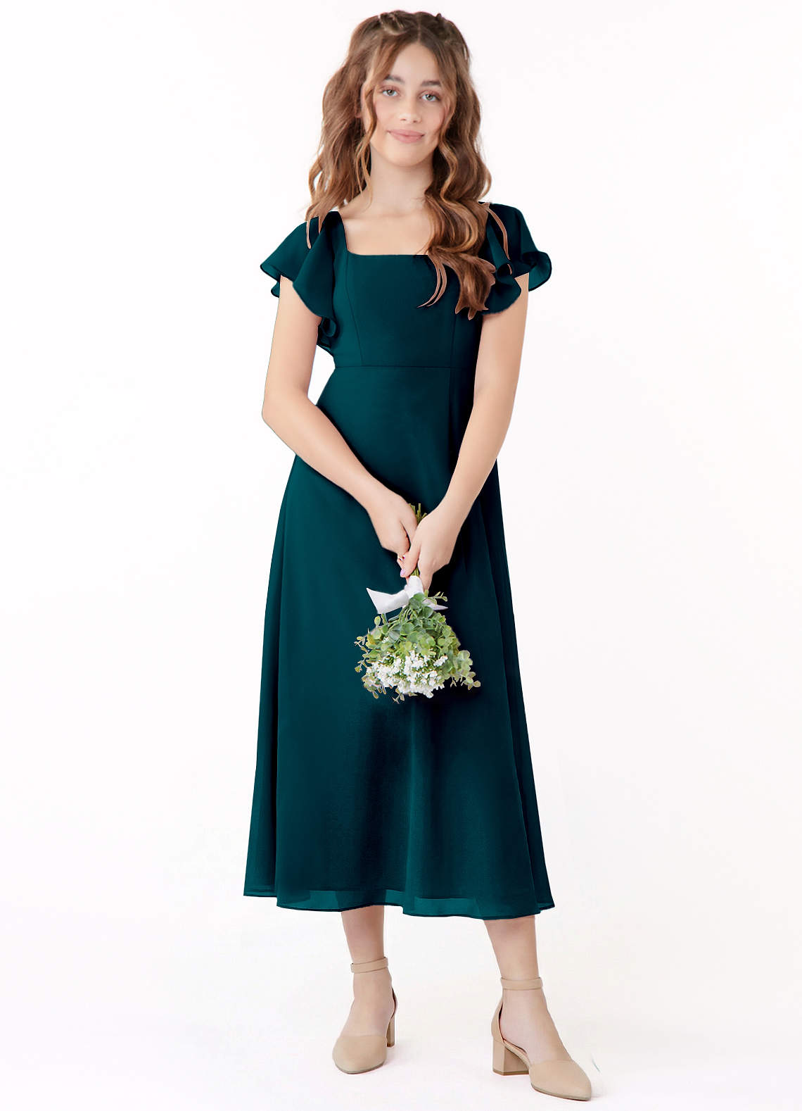 Linia A Marszczony Szyfon Długość herbaty Młodsza druhna Sukienka