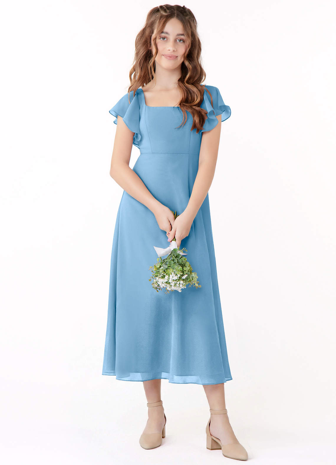 Linia A Marszczony Szyfon Długość herbaty Młodsza druhna Sukienka