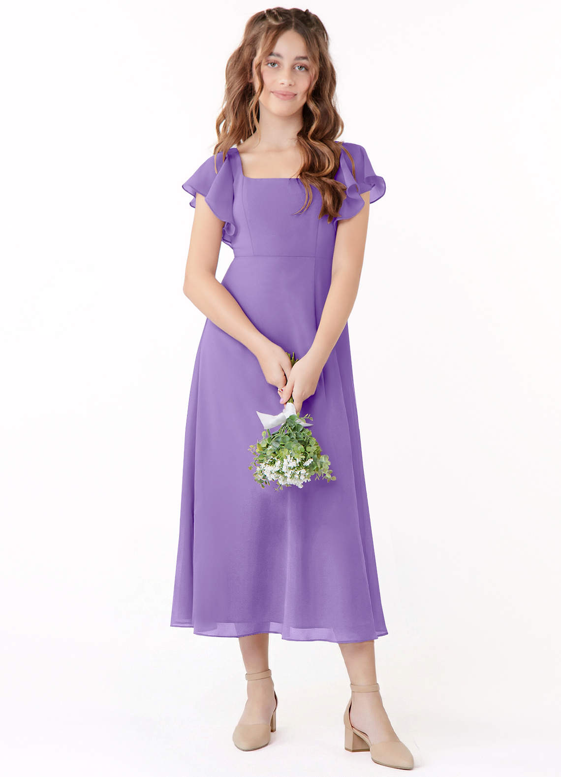 Linia A Marszczony Szyfon Długość herbaty Młodsza druhna Sukienka