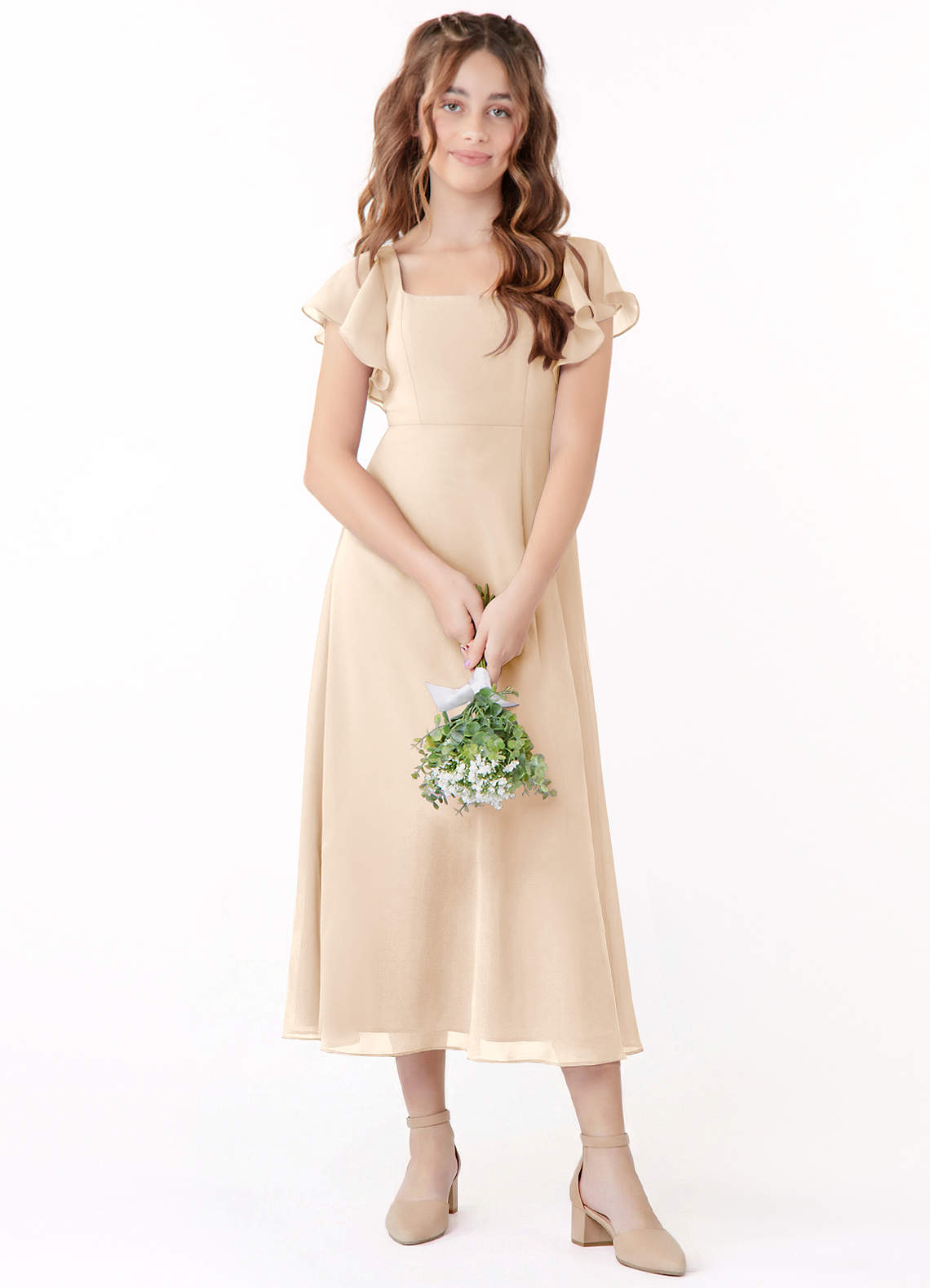 Linia A Marszczony Szyfon Długość herbaty Młodsza druhna Sukienka