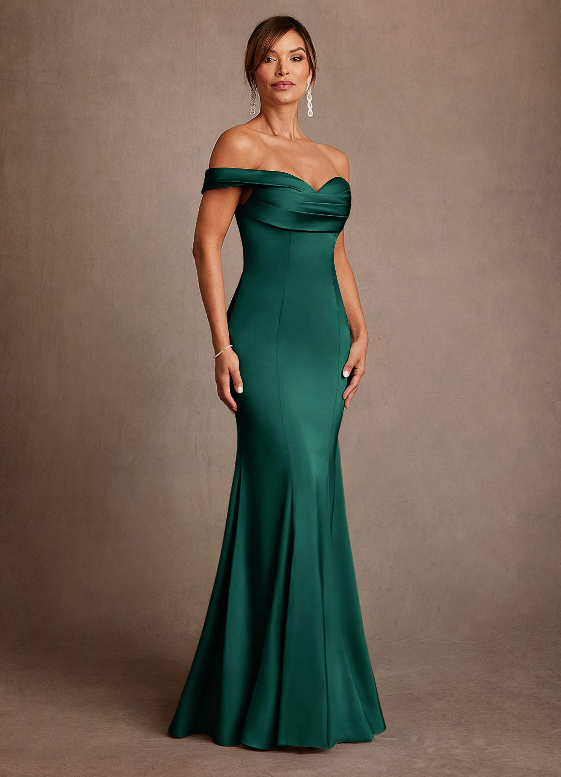 Syrena Zza ramienia Satyna elastyczna Długość podłogi Sukienka