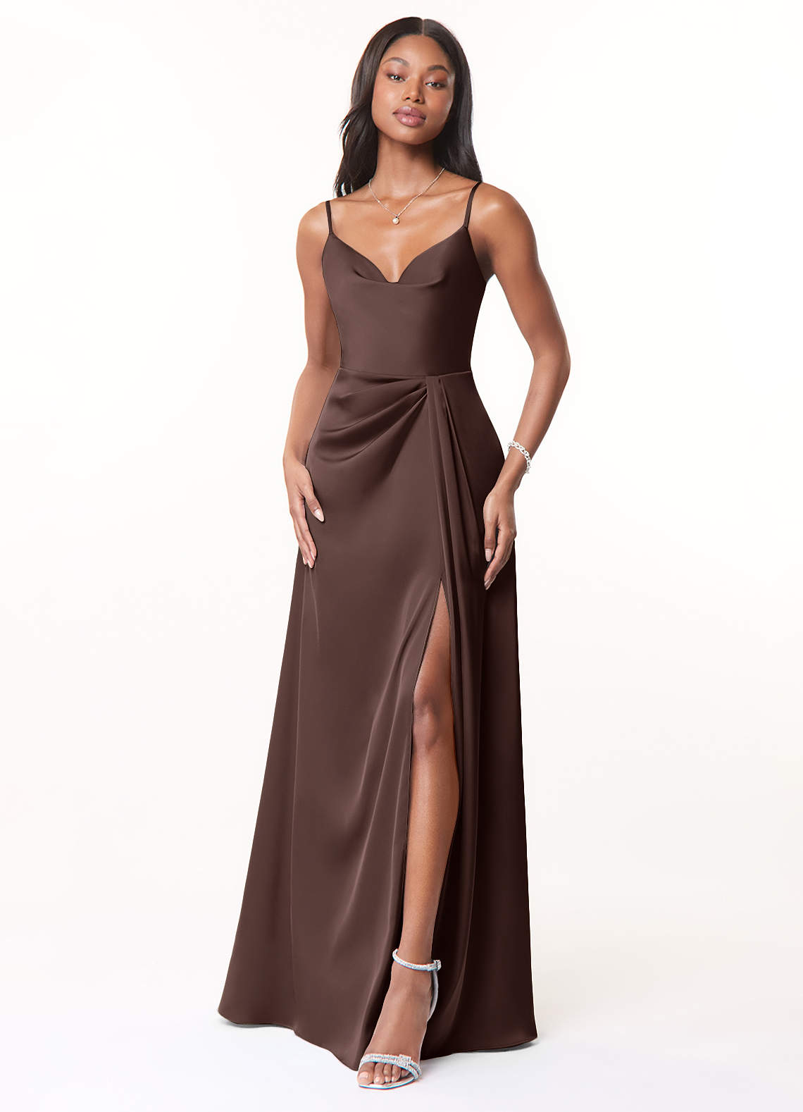 Linia A Pofałdowany Satyna elastyczna Do ziemi Sukienka