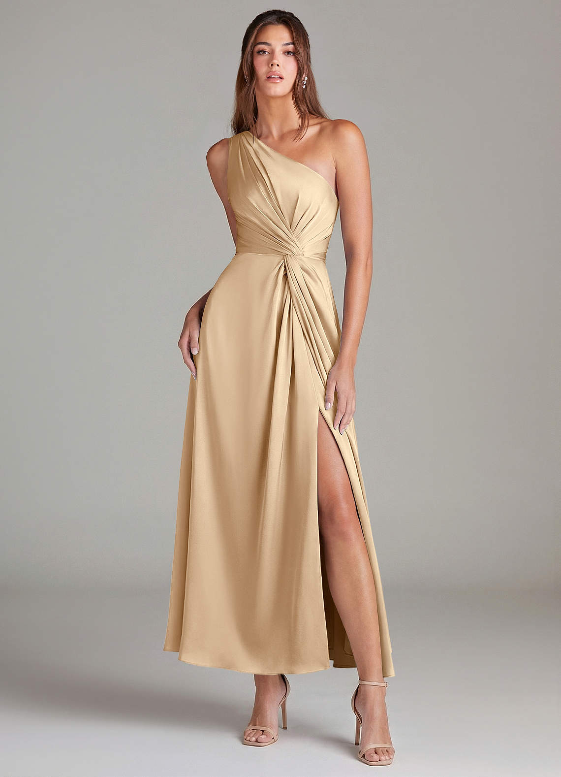 Linia A Jedno ramię Satyna elastyczna Długość kostki Sukienka