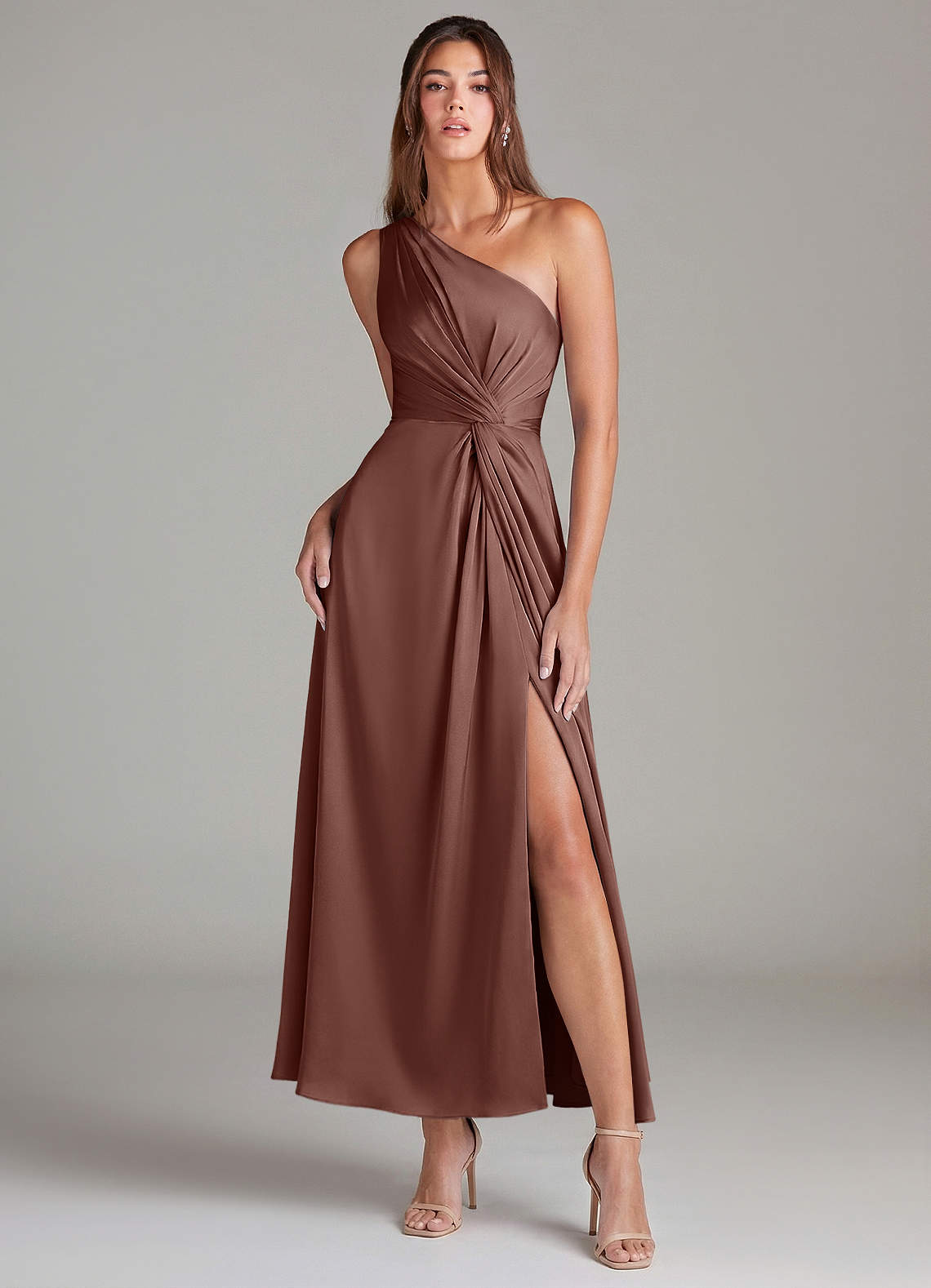 Linia A Jedno ramię Satyna elastyczna Długość kostki Sukienka