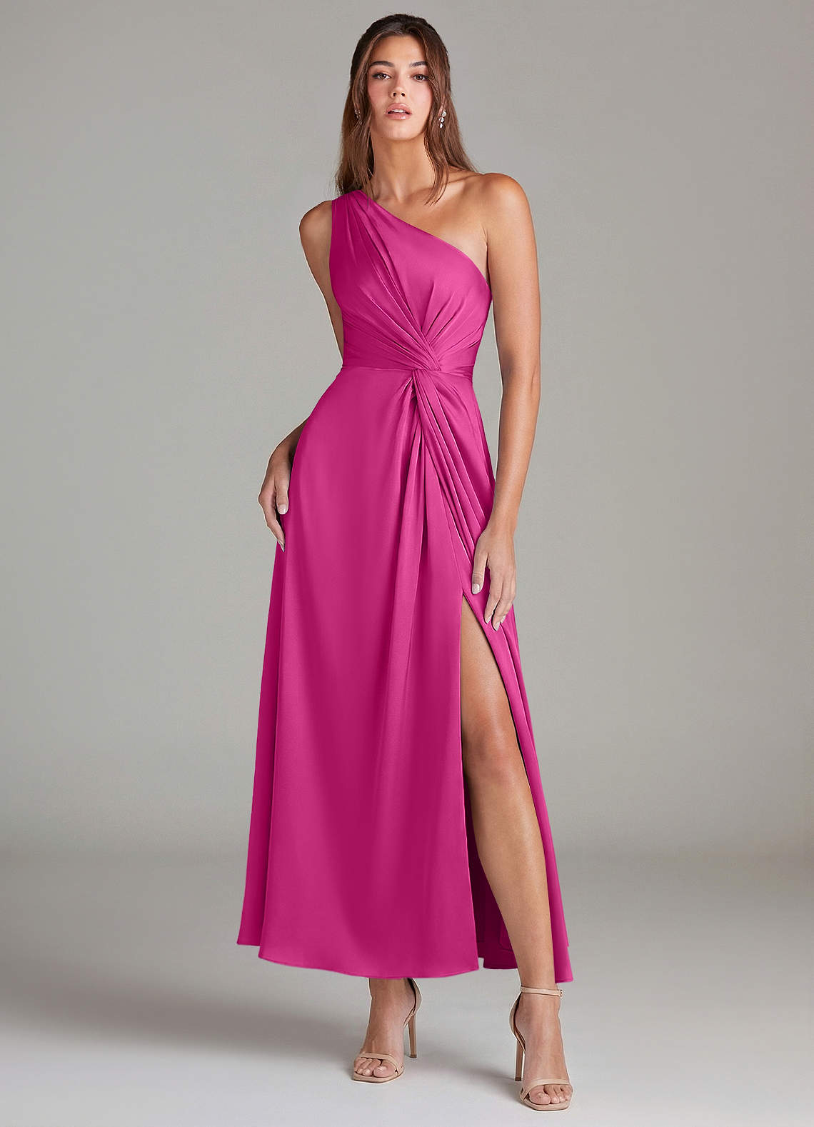 Linia A Jedno ramię Satyna elastyczna Długość kostki Sukienka