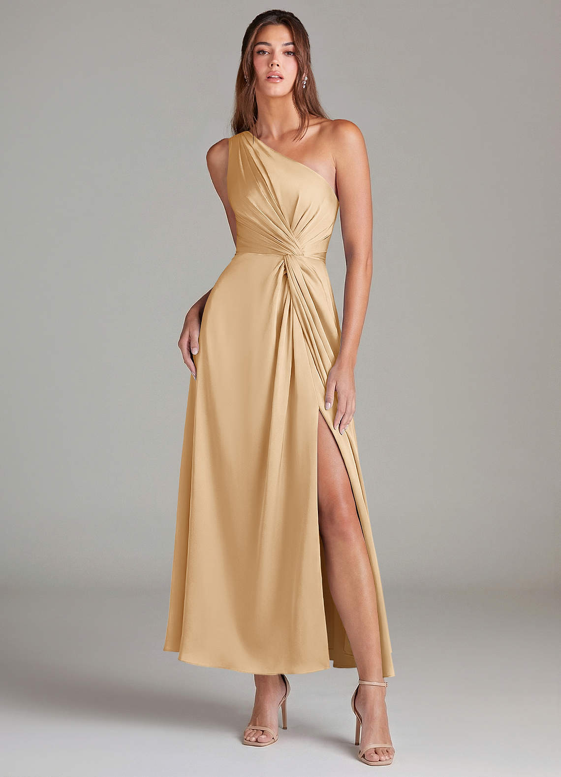 Linia A Jedno ramię Satyna elastyczna Długość kostki Sukienka