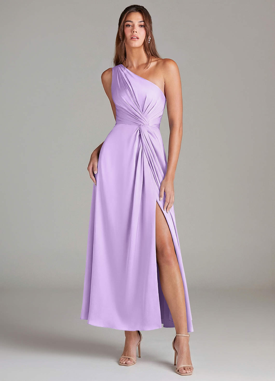 Linia A Jedno ramię Satyna elastyczna Długość kostki Sukienka