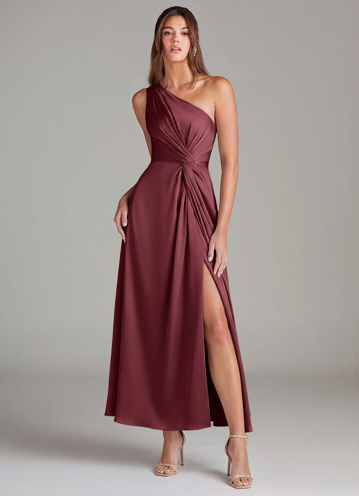 Linia A Jedno ramię Satyna elastyczna Długość kostki Sukienka