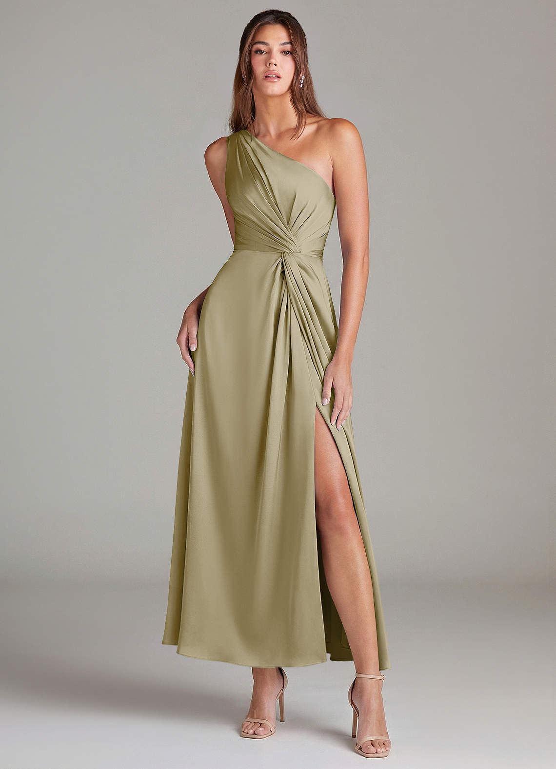 Linia A Jedno ramię Satyna elastyczna Długość kostki Sukienka