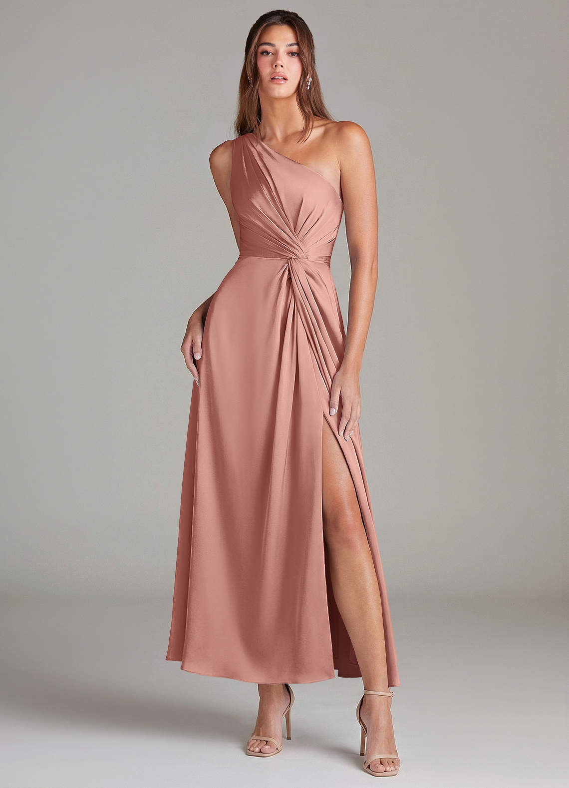 Linia A Jedno ramię Satyna elastyczna Długość kostki Sukienka