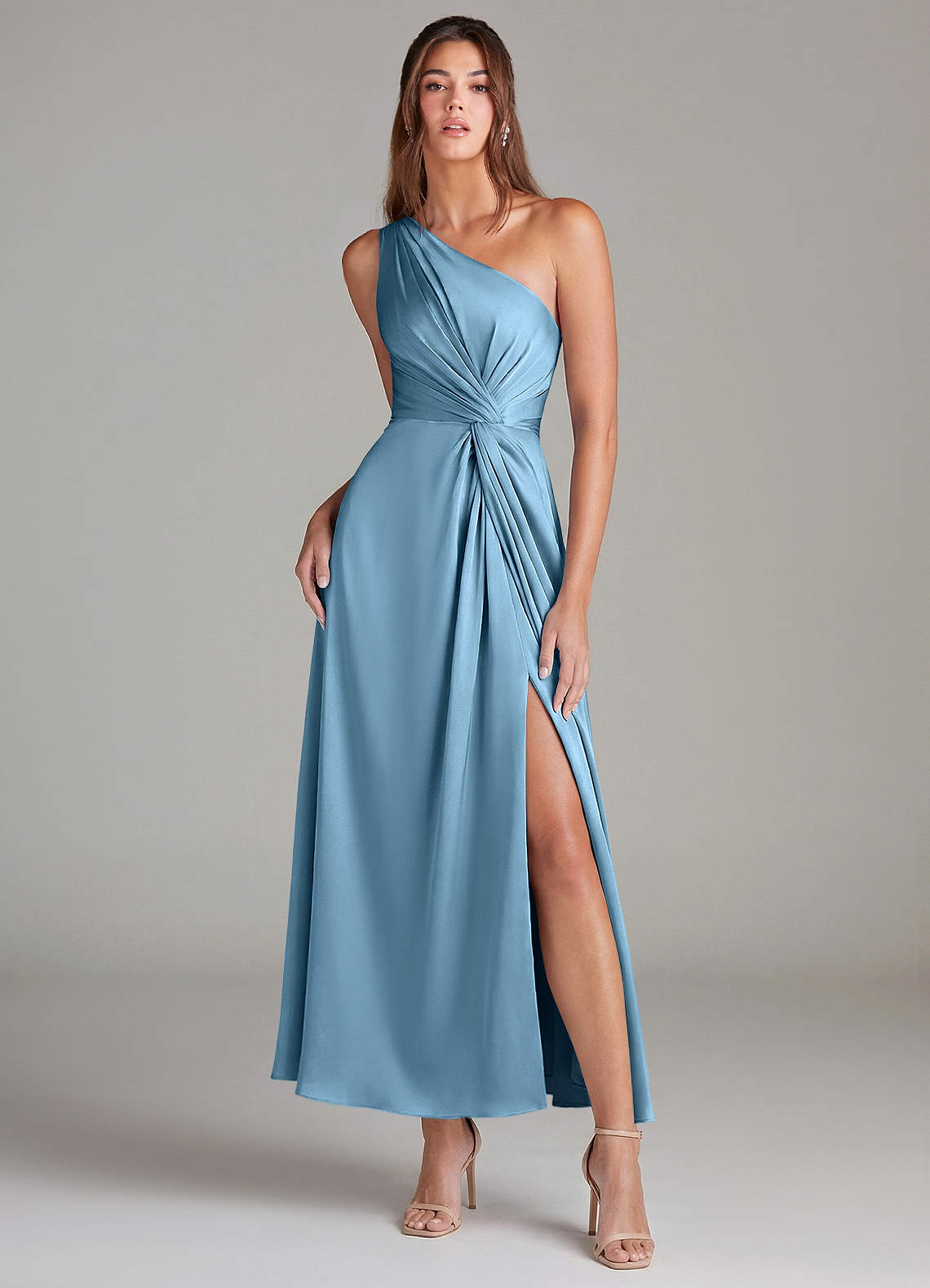Linia A Jedno ramię Satyna elastyczna Długość kostki Sukienka