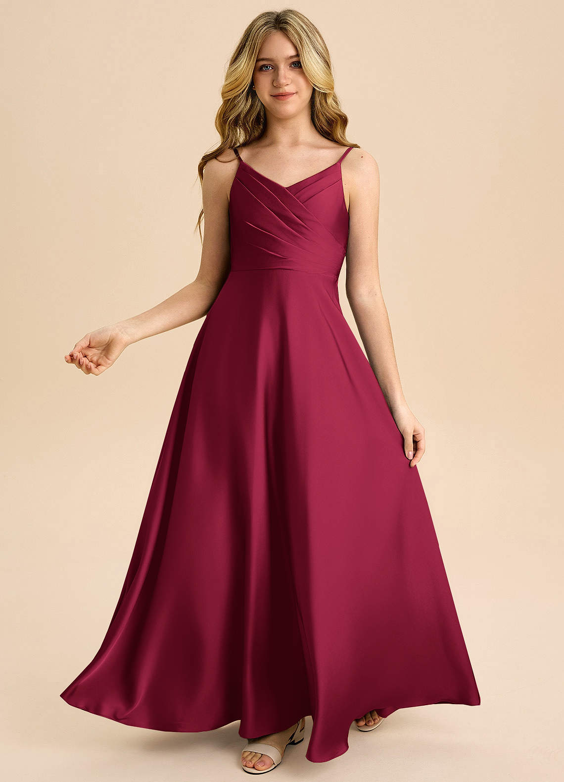 Linia A Pofałdowany Satyna elastyczna Długość podłogi Młodsza druhna Sukienka