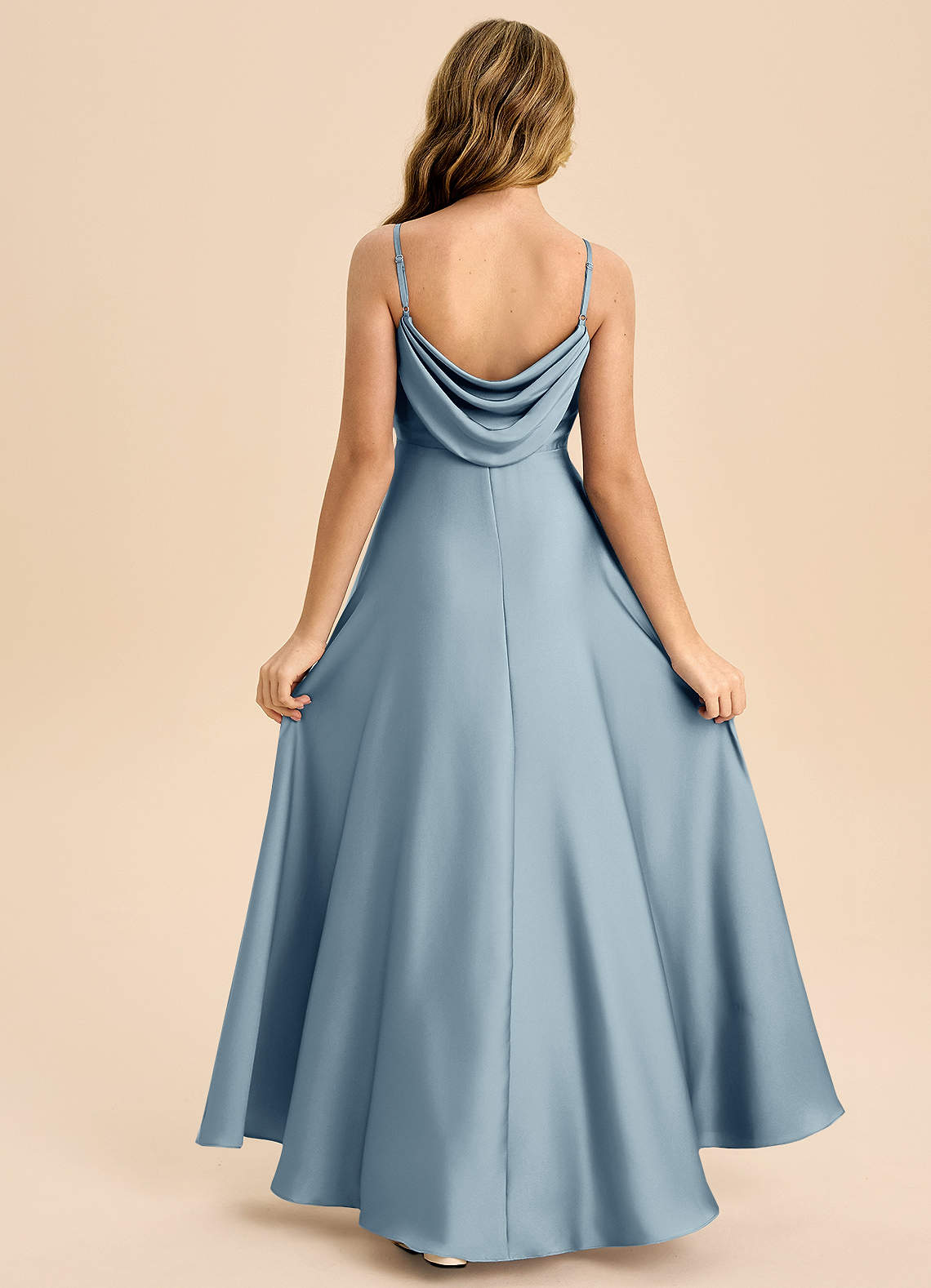 Linia A Pofałdowany Satyna elastyczna Długość podłogi Młodsza druhna Sukienka