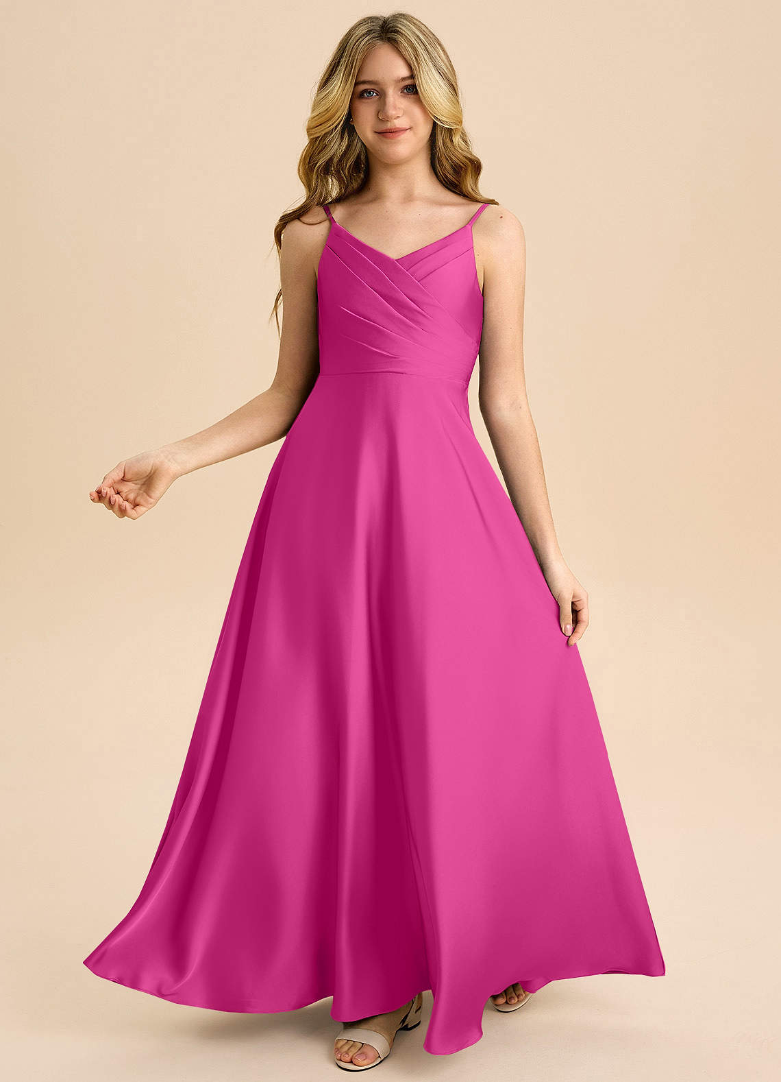Linia A Pofałdowany Satyna elastyczna Długość podłogi Młodsza druhna Sukienka