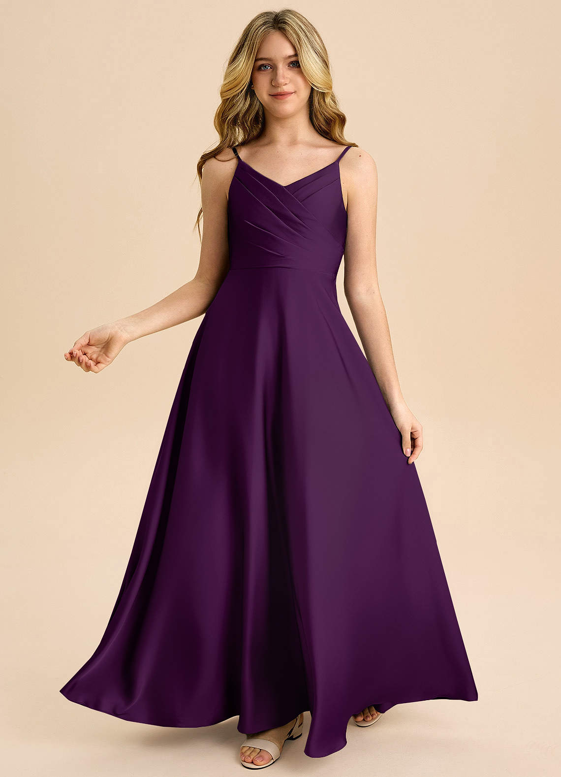 Linia A Pofałdowany Satyna elastyczna Długość podłogi Młodsza druhna Sukienka