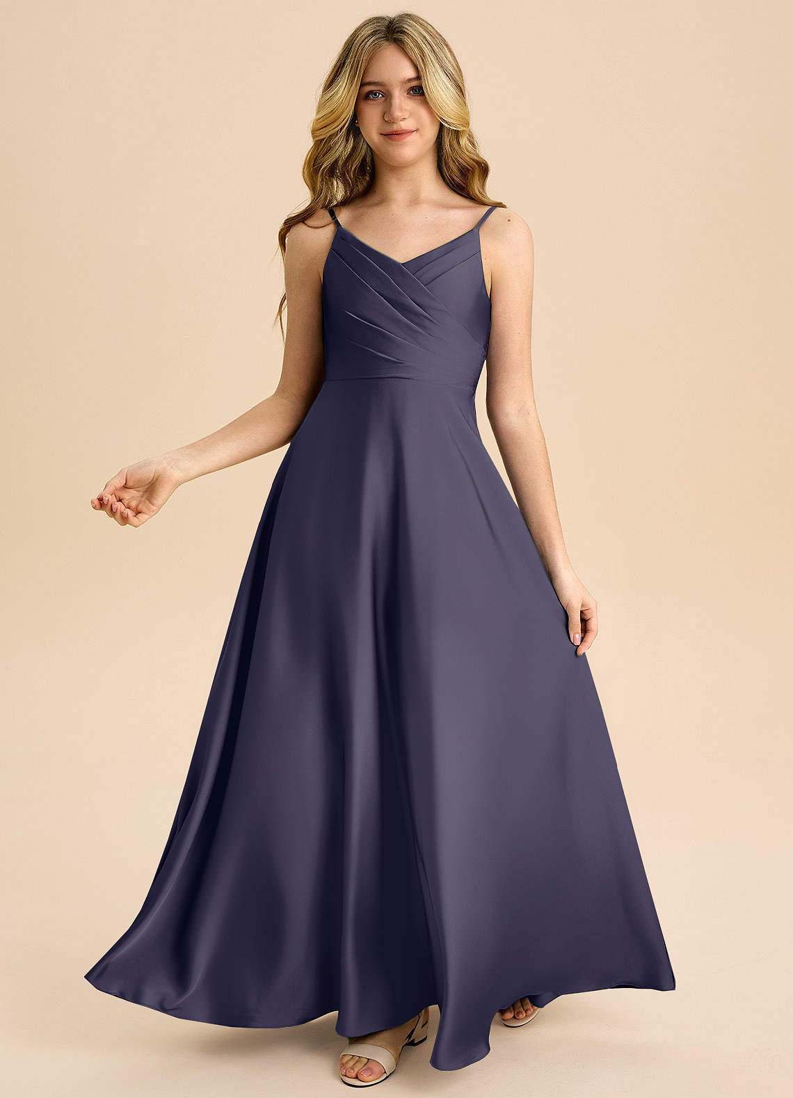 Linia A Pofałdowany Satyna elastyczna Długość podłogi Młodsza druhna Sukienka