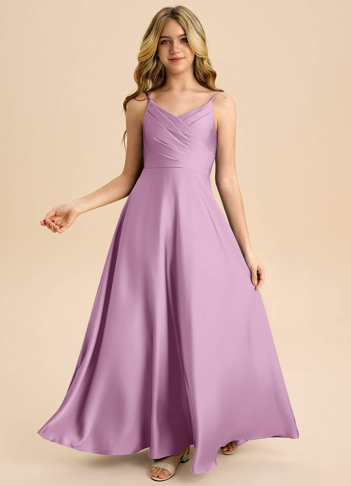 Linia A Pofałdowany Satyna elastyczna Długość podłogi Młodsza druhna Sukienka
