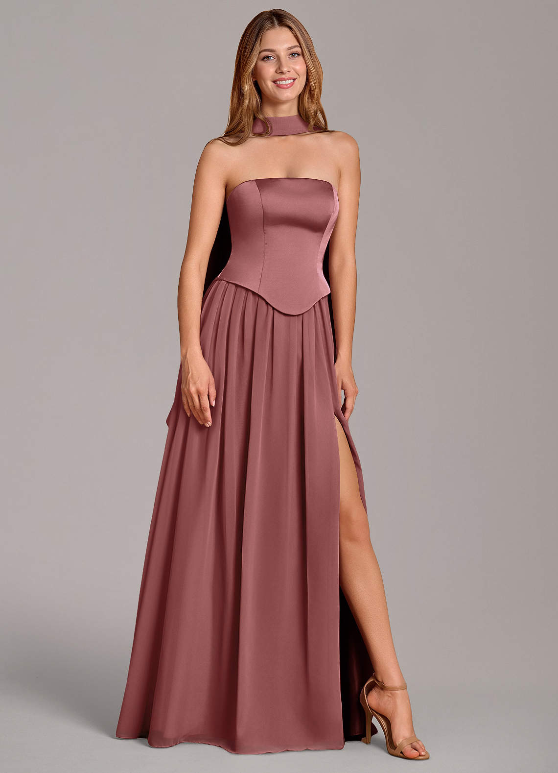 Linia A Gorset Satyna elastyczna Do ziemi Sukienka
