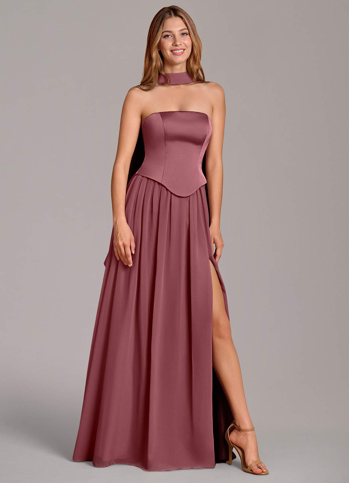 Linia A Gorset Satyna elastyczna Do ziemi Sukienka