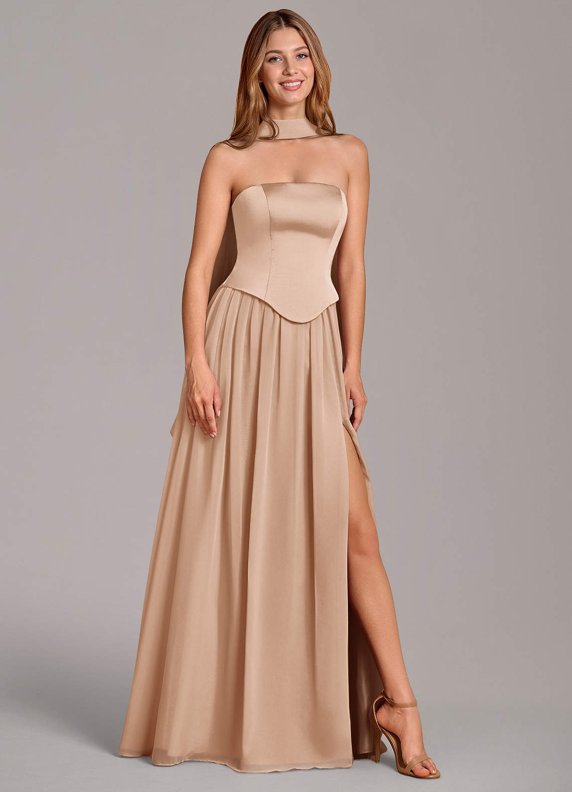 Linia A Gorset Satyna elastyczna Do ziemi Sukienka