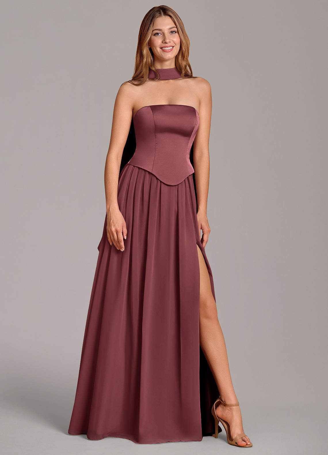 Linia A Gorset Satyna elastyczna Do ziemi Sukienka