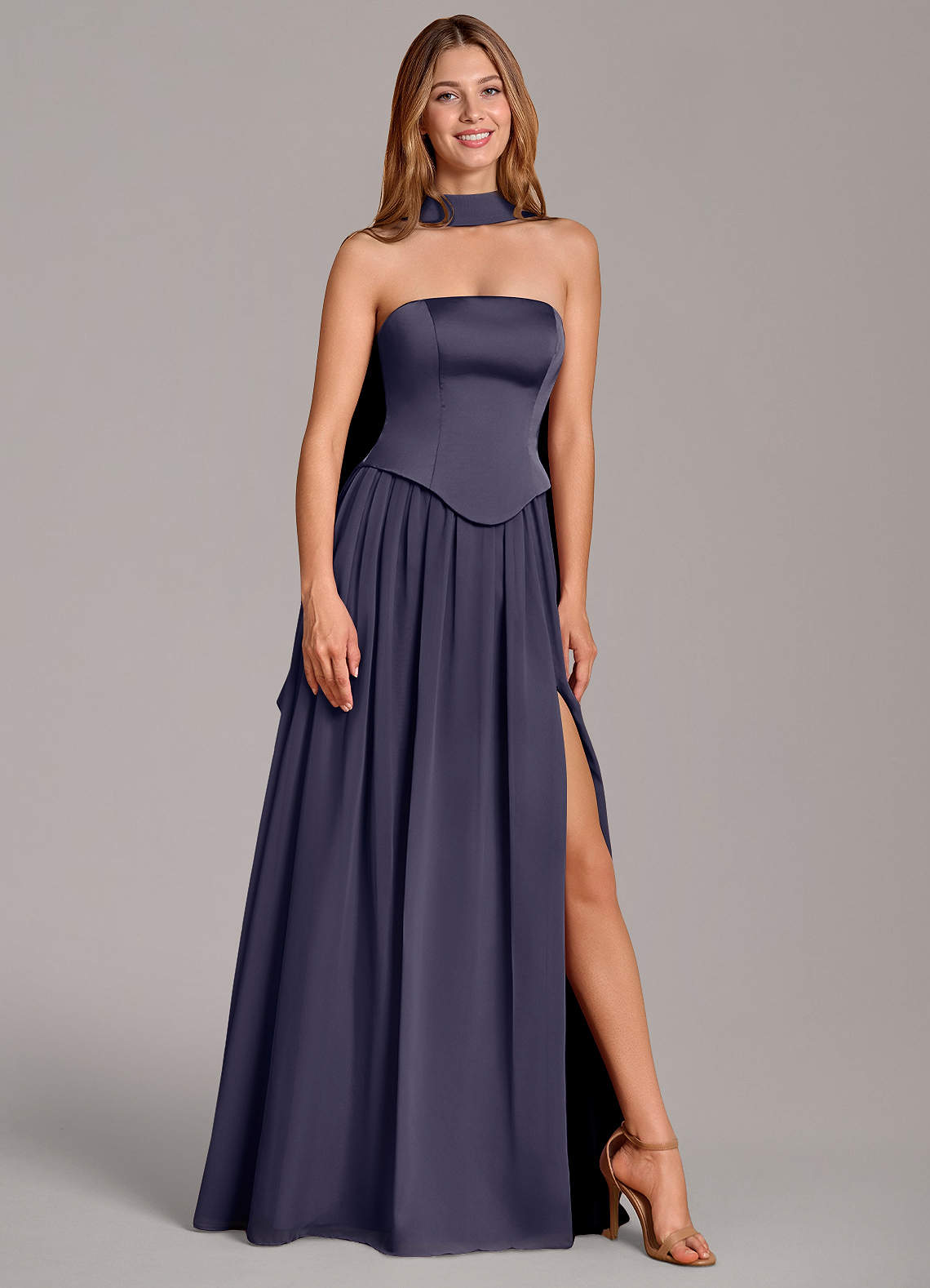 Linia A Gorset Satyna elastyczna Do ziemi Sukienka