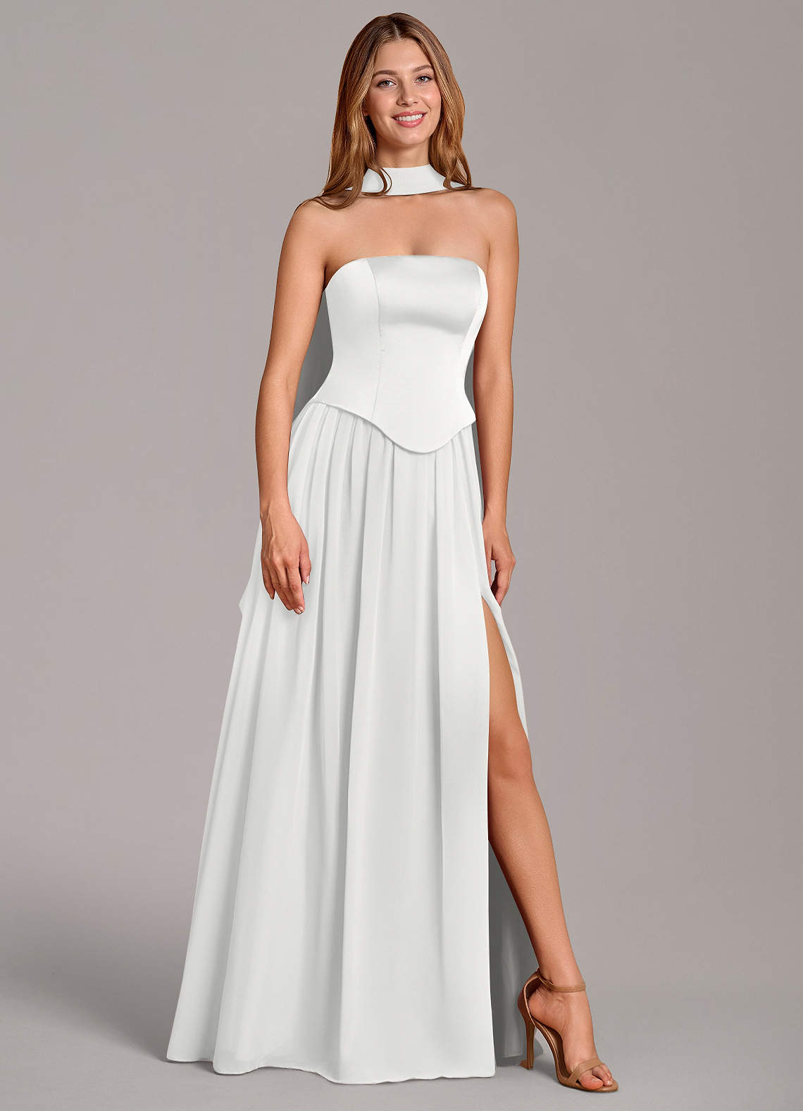 Linia A Gorset Satyna elastyczna Do ziemi Sukienka