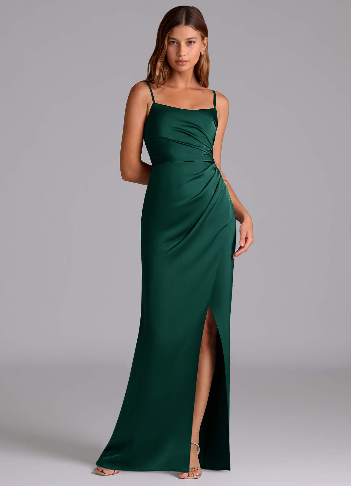 Linia A Pofałdowany Satyna elastyczna Do ziemi Sukienka