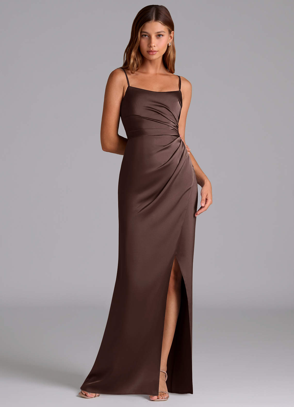 Linia A Pofałdowany Satyna elastyczna Do ziemi Sukienka
