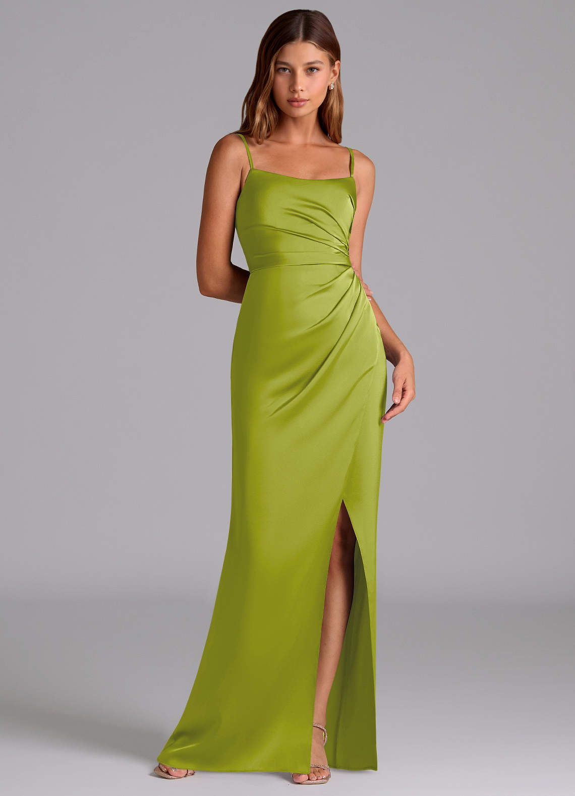 Linia A Pofałdowany Satyna elastyczna Do ziemi Sukienka