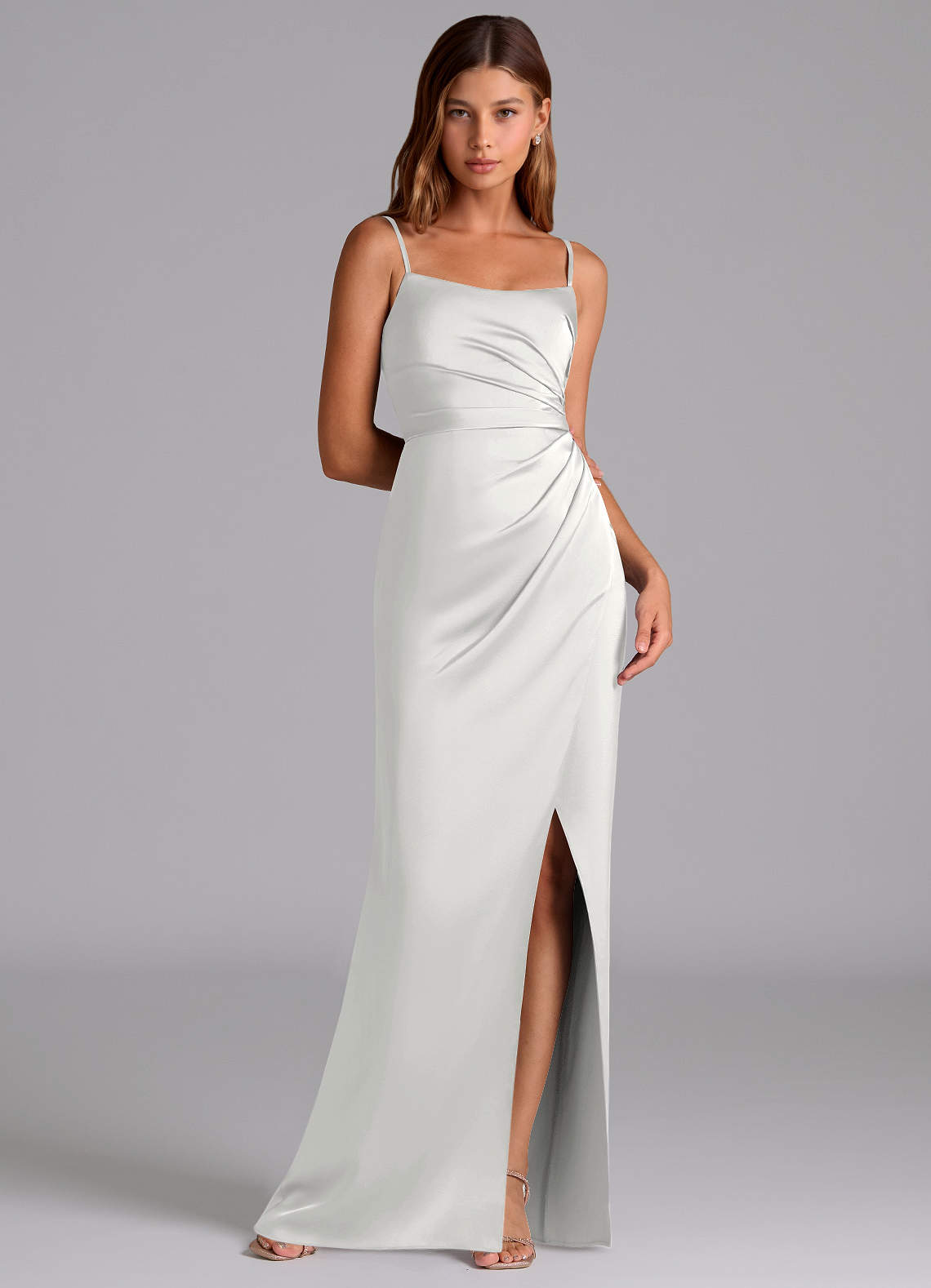 Linia A Pofałdowany Satyna elastyczna Do ziemi Sukienka