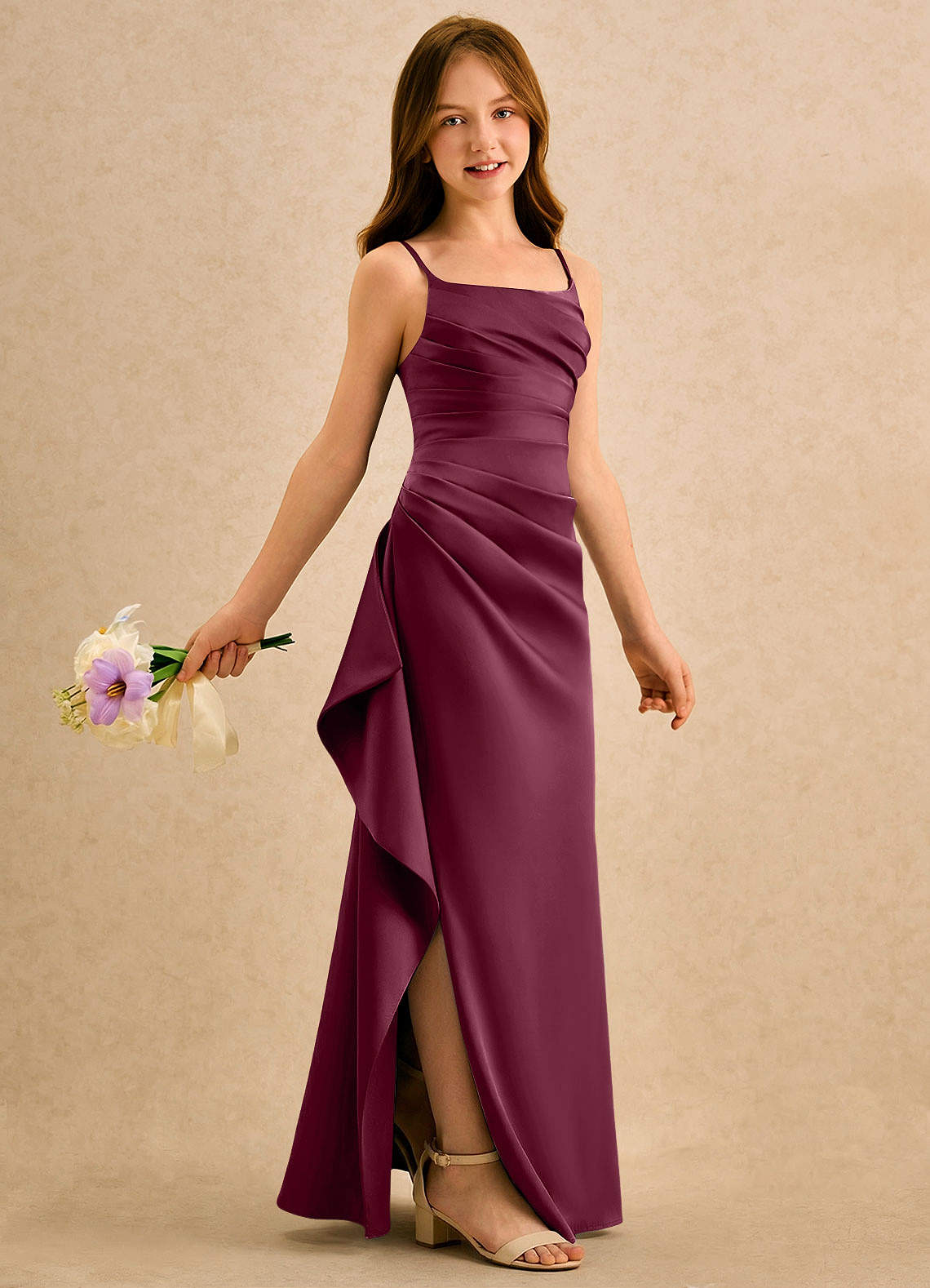 Linia A Pofałdowany Satyna elastyczna Długość podłogi Sukienka