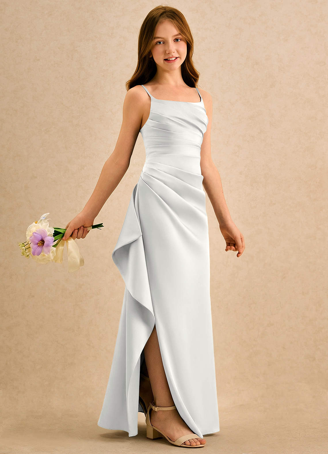 Linia A Pofałdowany Satyna elastyczna Długość podłogi Sukienka