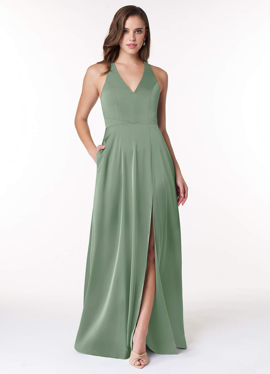 Linia A Satyna elastyczna Długość podłogi Sukienka