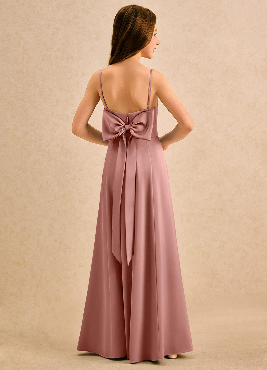 Linia A Pofałdowany Satyna elastyczna Długość podłogi Sukienka