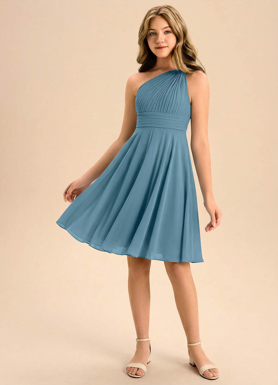 Linia A Pofałdowany Szyfon Mini Młodsza druhna Sukienka