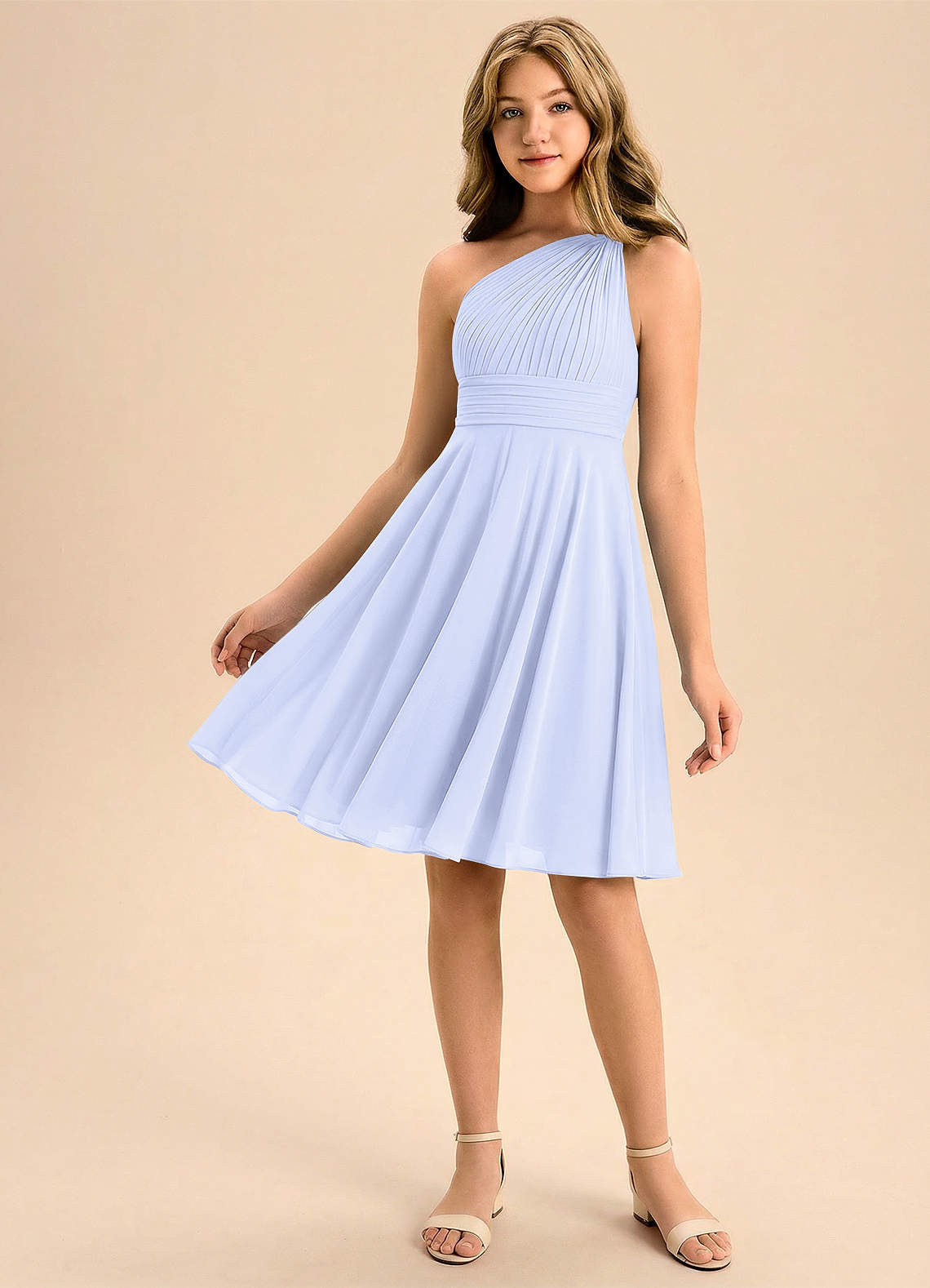 Linia A Pofałdowany Szyfon Mini Młodsza druhna Sukienka